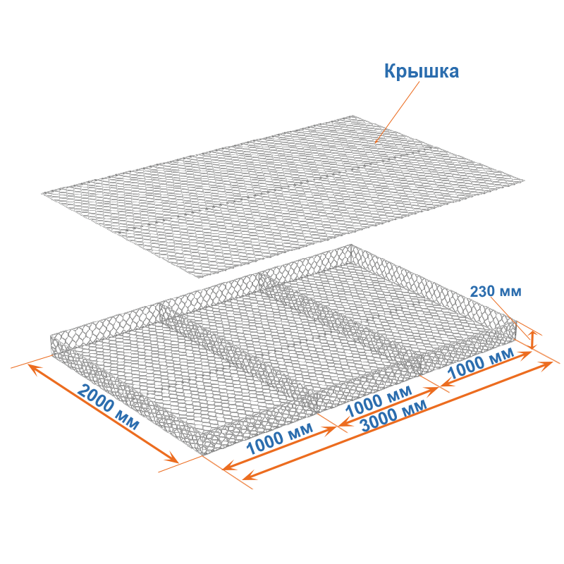 Габион матрац ГСИ-М 3х2х0,23 оцинкованный, Ø проволоки 2,4 мм, размер ячейки 6х8 см фото