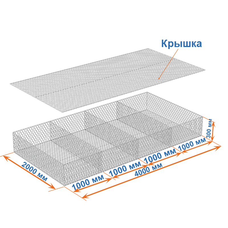 Габион матрац ГСИ-М 4х2х0,3 оцинкованный / ЦП, Ø проволоки 2,7/3,7 мм, размер ячейки 8х10 см