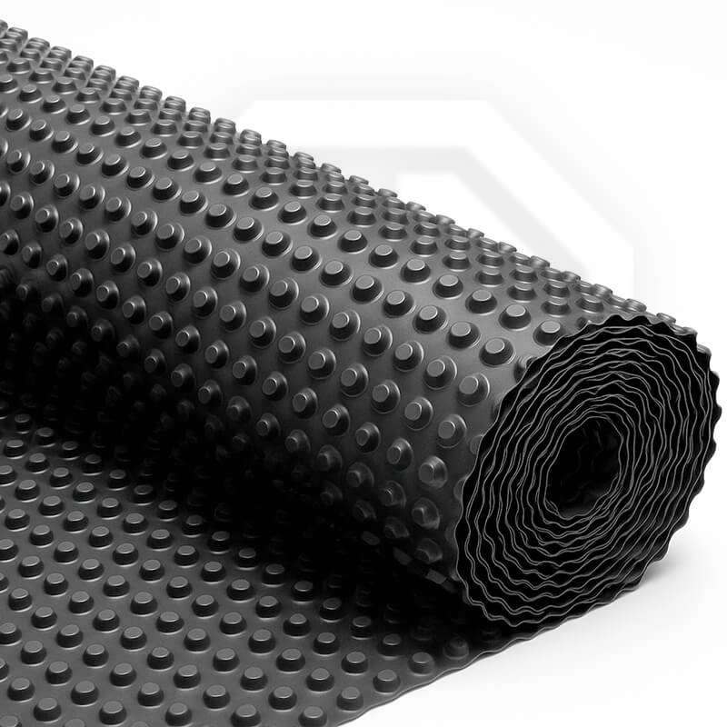 Укладка мембраны Тефонд НР производится выпуклыми полусферами вверх. В данном случае, мембрану удобно использовать для создания дренажной системы.